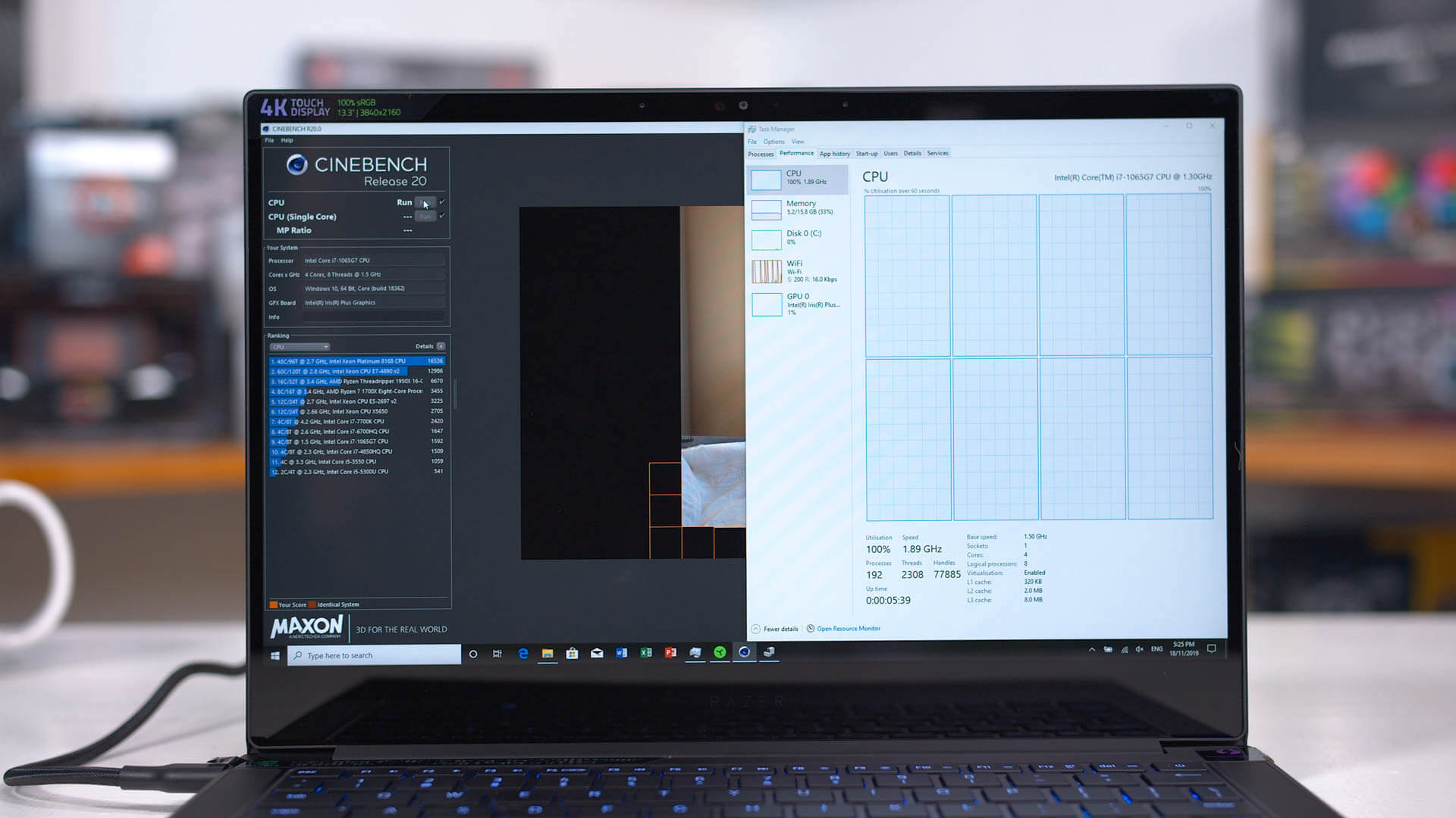 The laptop we have for testing with Ice Lake inside is the new Razer Blade Stealth, a laptop design that we really like with its super sleek metal design and high-end components. It also tends to provide a really great test platform - the CPU inside this beast can be configured at both its standard 15W TDP, or at a higher 25W TDP, giving us useful data for both. It also packs dual-channel memory at the maximum LPDDR4X-3733 speeds, so we're getting the full memory bandwidth improvements of Ice Lake in this test system, too, which is ideal.