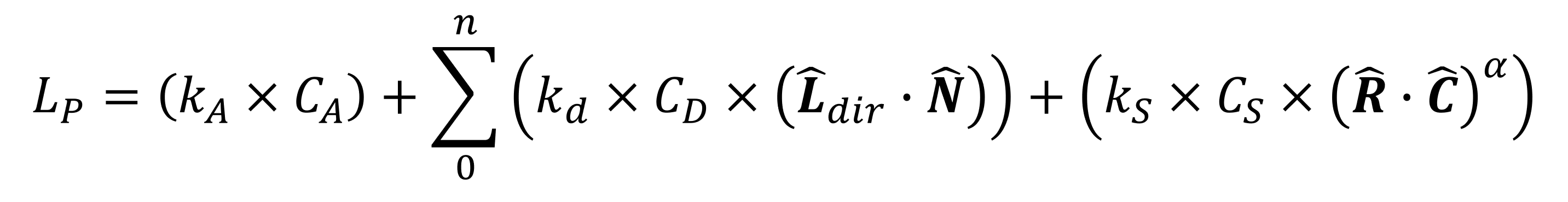 This equation is generally called the Phong reflection model, and at the time of the original research, the proposal was radical, as it required a serious amount of computational power. A simplified version was created by Jim Blinn, that replaced the section in the formula using R and C, with H and N (the half-way vector and surface normal). The value of R has to be calculated for every light, for every pixel in a frame, whereas H only needs to be calculated once per light, for the whole scene.